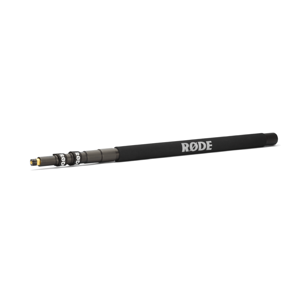 {The Boompole Pro from Rode is a compact carbon fiber boompole that extends from 2.7' in length to a full 9.8', and it is designed for use with professional shotgun microphones. The five carbon fiber sections make it lightweight while maintaining strength, and they are easily extendable with one hand using the intuitive twist-lock mechanism.”